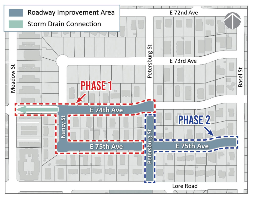 The Municipality of Anchorage Project Management & Engineering Department (MOA PM&E) is planning to upgrade E. 74th Avenue, Nancy Street, Petersburg Street, and E. 75th Avenue (see map below for project limits). Improvements will include: